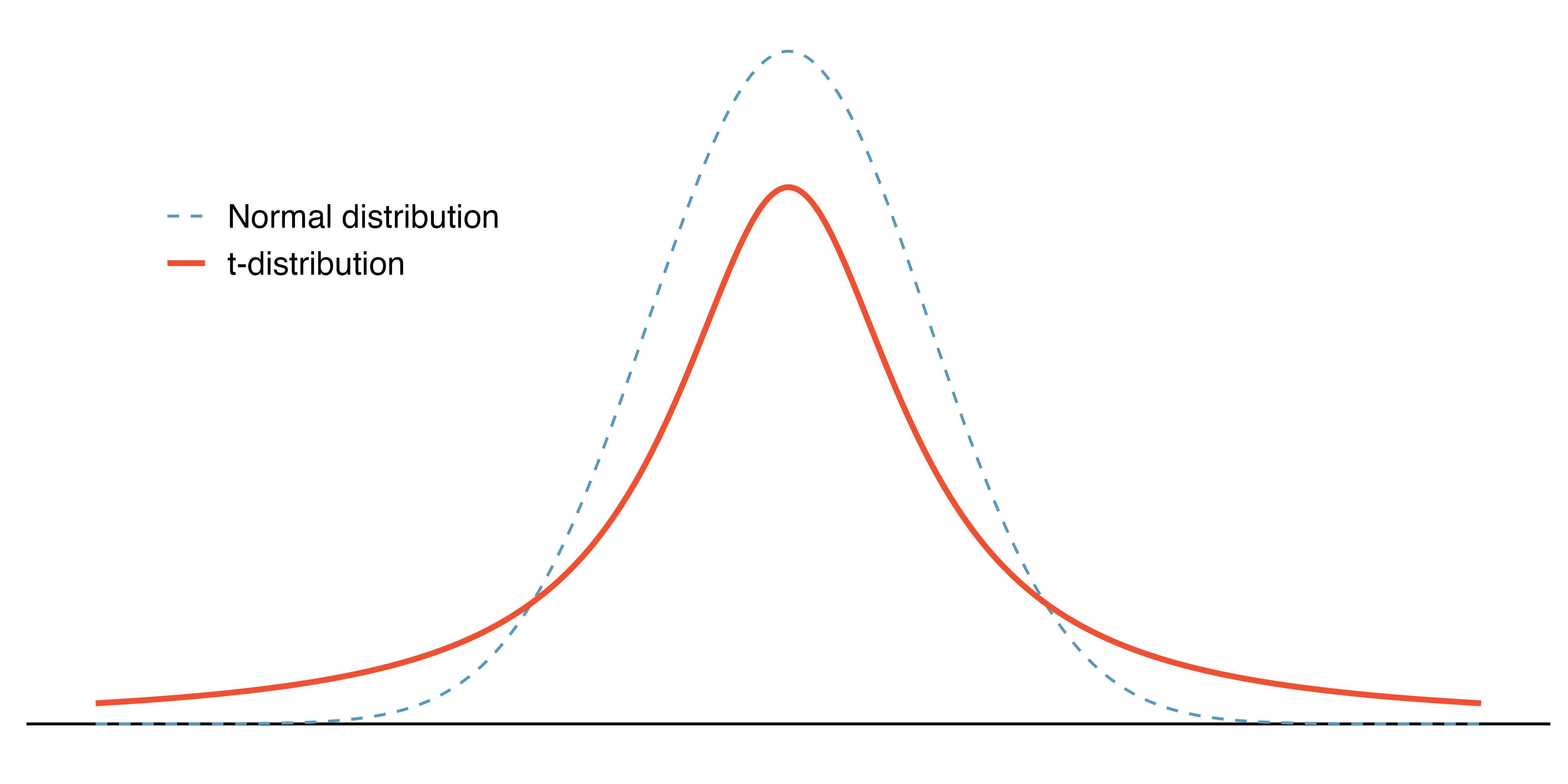 In general, we’ll use a t-distribution with n-1 degrees of freedom to model the sample mean when the sample size is n.