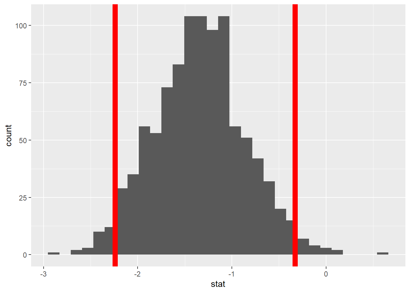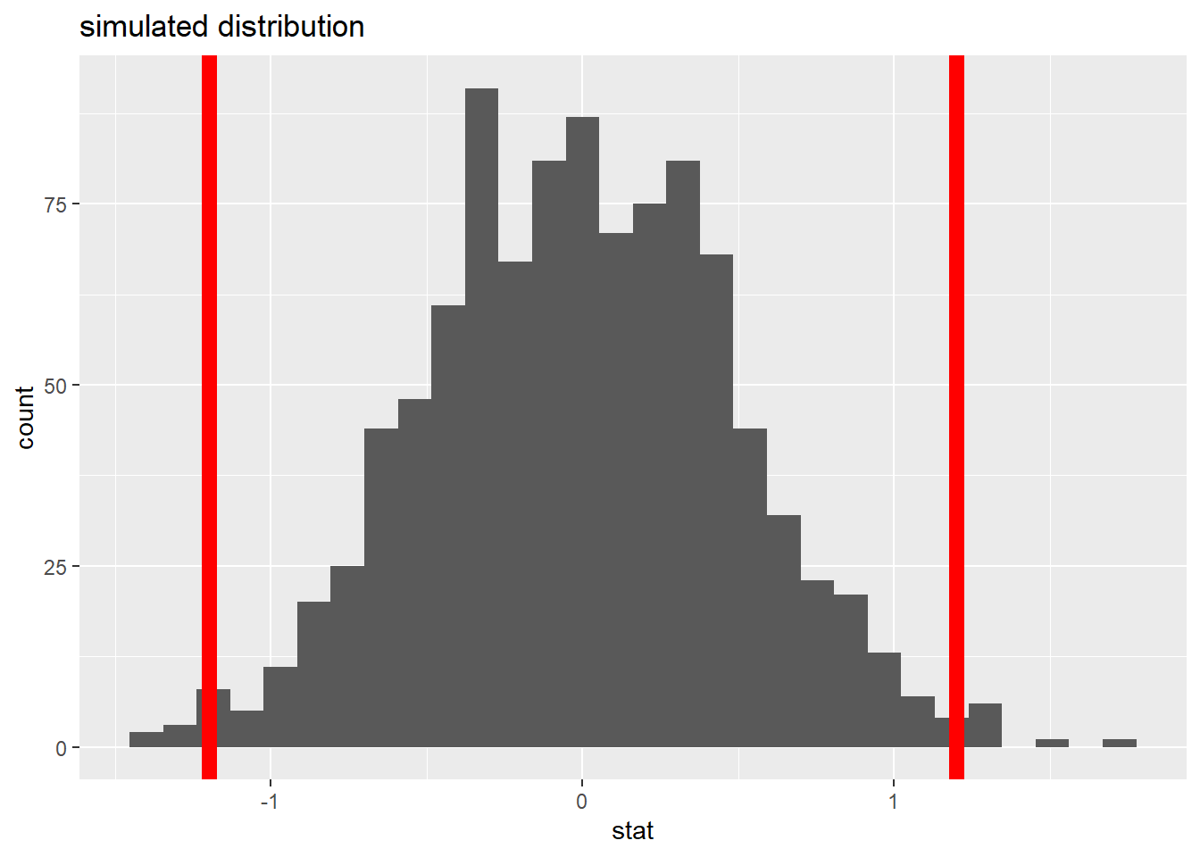 – p-value (probability of observing our stat, or something more extreme, given the null is true)