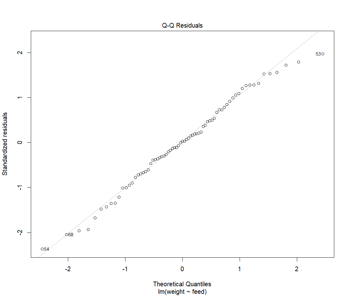 If standardized residuals mostly fall on the line, not enough evidence to reject the normality assumption
